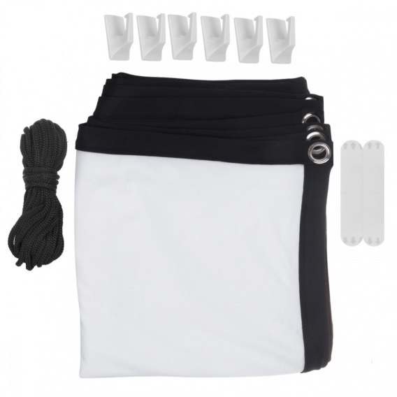 Ekran mocowany jest do ściany za pomocą dołączonych haczyków oraz taśmy samoprzylepnej, dzięki czemu można go łatwo zdjąć i zamocować w innym miejscu. Do montażu można również wykorzystać dołączono do zestawu linkę.