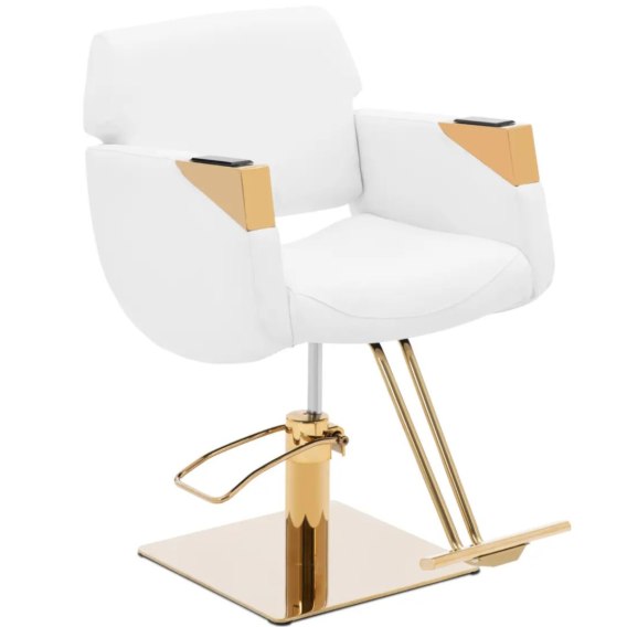 Fotel fryzjerski barberski kosmetyczny z podnóżkiem Physa PENRYN - biało złoty Physa