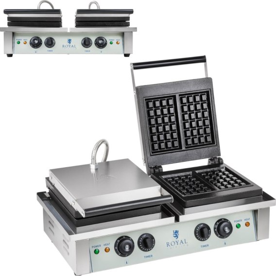 Gofrownica prostokątna podwójna na 4 gofry belgijskie Royal Catering