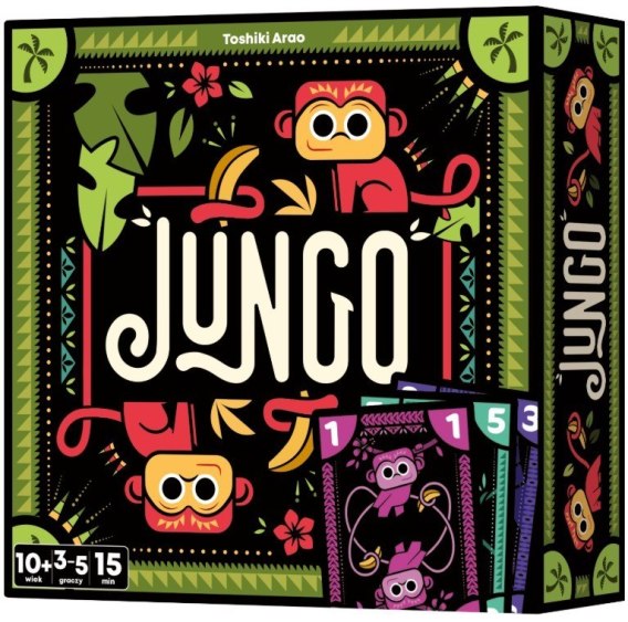 Jungo to ekscytująca gra oparta na zarządzaniu ręką. W swojej turze możemy dobrać kartę lub zagrać zestaw, jednak jeśli chcemy przebić kombinację znajdującą się na stole, musimy pamiętać o kilku zasadach, z których najważniejsza brzmi: nigdy, ale to nigdy nie zmieniaj położenia kart na ręce!