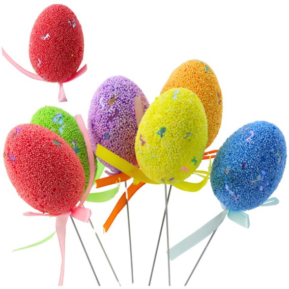 JAJKA WIELKANOCNE NA PIKU DRUCIKU KOLOROWE Z NUTKAMI 6SZT
