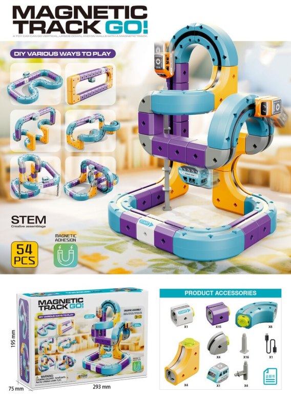 KREATYWNE KLOCKI MAGNETYCZNE DLA DZIECI - MAGNETIC TRACK GO! 54