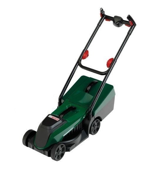 Kosiarka jest w kolorze ciemnozielonym z czarną rączką do prowadzenia i kolami. Koła są ruchome, więc kosiarka może poruszać się po różnych powierzchniach. Wnętrze kosiarki jest puste, dzięki czemu ma ona odpowiednią, niską wagę dla zabawy dzieci, a do jej ewentualnego przenoszenia na górze obudowy umieszczono specjalny uchwyt. Ważnym elementem tej kosiarki jest także zdejmowany kosz na odpady. Popularna zabawka ogrodnicza jest wyposażona w imitację elektrycznego rozrusznika umieszczonego na rączce kosiarki. Kosiarka podczas toczenia się wydaje realistyczne odgłosy terkotania, a koła przy poruszaniu dodatkowo wesoło dudnią. Czarny uchwyt w postaci rączki do prowadzenia kosiarki ma około 45 cm długości, co daje odpowiednio około 55 cm wysokości i 22 cm szerokości gotowego do zabawy sprzętu ogrodniczego. Kosiarka z pewnością spodoba się wszystkim dzieciom uwielbiającym zabawy w ogrodnika. Dzięki wysokiej jakości wykonania, zestaw będzie służyć przez długi czas.