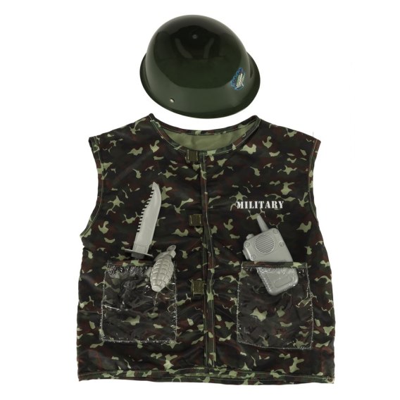 Ten wojskowy komplet wyróżnia się klimatem i detalami. Zestaw żołnierza pozwala młodemu odkrywcy wejść w pełni w rolę bohatera, który działa, planuje i współpracuje. Wojskowa kamizelka moro zestawiona z hełmem buduje wyrazisty militarny klimat, a walkie talkie granat to tematyczne dodatki wzbogacające całą stylizację o element przygody. To propozycja dla młodego żołnierza, który chce się wyróżnić i poczuć pewność w każdej sytuacji zabawy.