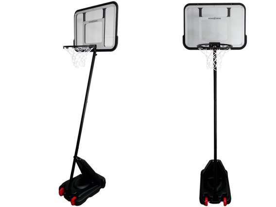 Prezentowany zestaw do gry nadaje się do zabawy na zewnątrz. Podstawa posiada otwór z zamknięciem - do odpowiedniego obciążenia stojaka podczas zabawy. Bez problemu można wlać do środka wodę bądź wsypać piasek, a kosz się nie przewróci. Dodatkowe zamontowane kółka u podstawy umożliwią przemieszczanie kosza z miejsca na miejsce.