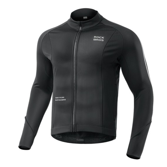 Koszulka kolarska rowerowa z długim rękawem ciepła jesień/zima XXL - czarna ROCKBROS