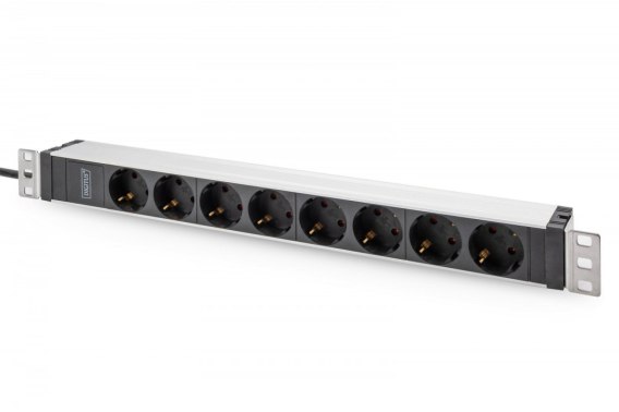 Listwa zasilająca PDU 19" Rack, 8x gniazdo ze stykami ochronnymi unischuko 16A/230V, 1x wtyczka IEC C20, 16A, przewód zasilający Digitus