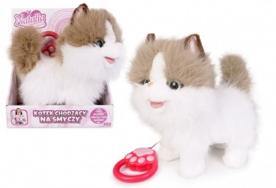 Maskotka interaktywna Kot chodzący na smyczy biało-rudy Artyk