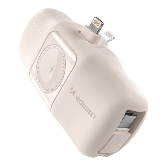 Mini powerbank 5000mAh 15W iPhone Lightning i ładowarką do Apple Watch - beżowy WOZINSKY