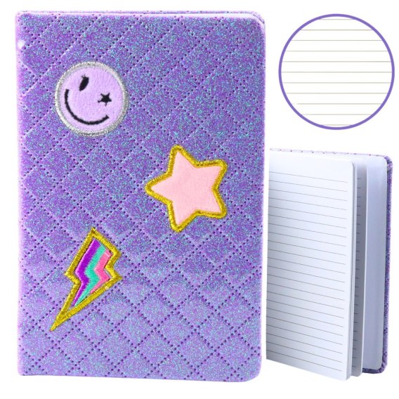 Notatnik W Linie Brokatowy Naszywki Fioletowy B6 80 Kartek