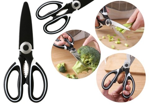 ✅ Wielofunkcyjność - Nożyczki pełnią rolę otwieracza do butelek, krakersa do orzechów, skrobaka do łusek, a także klasycznych nożyczek kuchennych do cięcia.