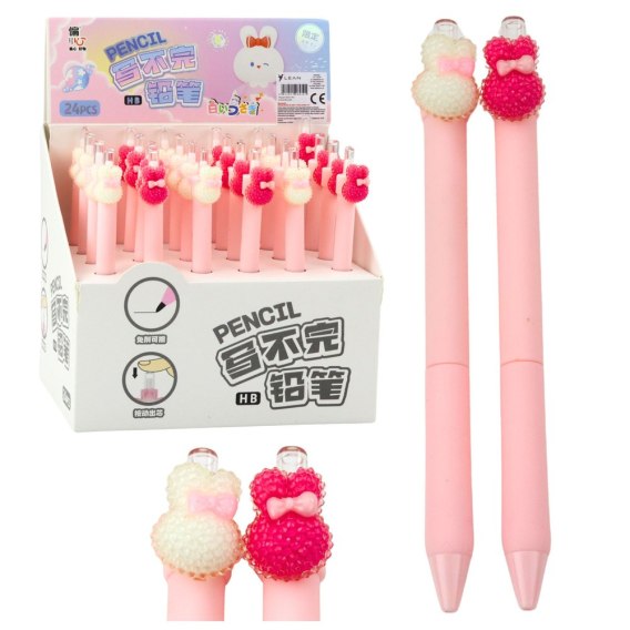 Ołówek Automatyczny Z Ozdobnym Króliczkiem Różowy 15cm