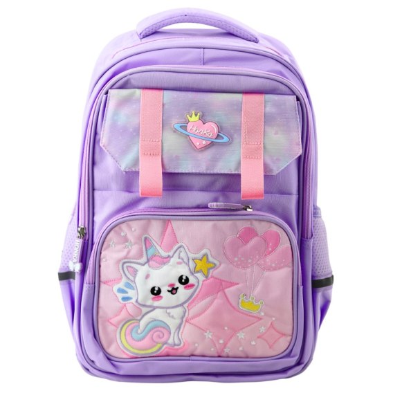 Fioletowy plecak szkolny z uroczym motywem kotka i kolorowymi elementami to połączenie estetyki, funkcjonalności i komfortu. Zaprojektowany z myślą o codziennym użytkowaniu przez najmłodszych, świetnie sprawdzi się jako plecak do szkoły.