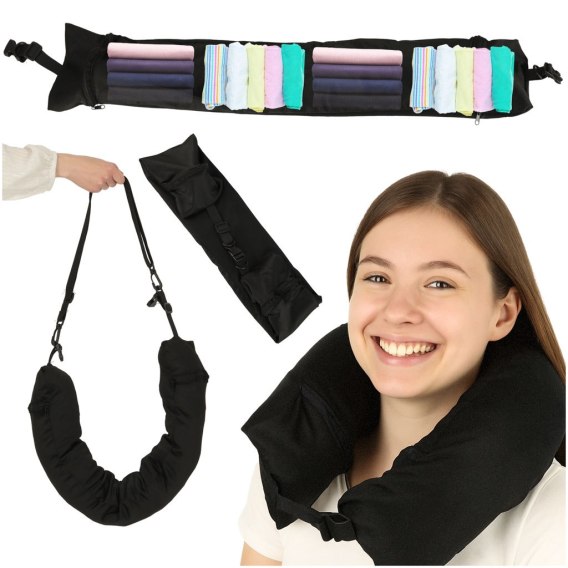 Poduszka turystyczna podróżna rogal zagłówek na szyję schowek do wypełnienia czarna Kik Sp. z o. o. Sp. k.