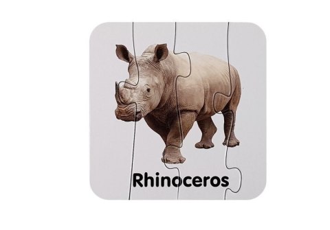 Łamigłówki edukacyjne będą dobrym ćwiczeniem dla wyobraźni, poszerzą wiedzę oraz ćwiczą cierpliwość. Całość będzie procentować w przyszłości u dziecka. Poprzez dopasowanie kształtów puzzli dowie się, jak wyglądają zwierzęta zamieszkujące min. Afrykę. Każde ze zwierząt mają podpis w języku angielskim, dzięki czemu pozna podstawowe słówka. Z wszystkich puzzli można stworzyć aż 10 połączeń. Na układance można zobaczyć min. żyrafę, lwa, nosorożca.