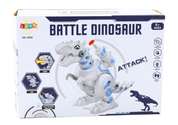 Robot Dinozaur Z Wyrzutnią Strzałek Światła Dźwięki Biały
