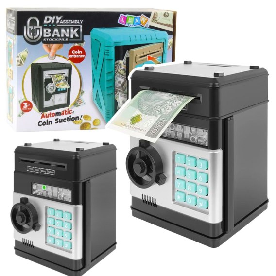 Po złożeniu sejf pełni funkcję elektronicznej skarbonki z klawiaturą numeryczną oraz efektami dźwiękowymi, które uatrakcyjniają korzystanie z zabawki. Sejf umożliwia przechowywanie banknotów oraz monet, a realistyczny wygląd sprawia, że dziecko czuje się jak właściciel prawdziwego sejfu bankowego. Efekty dźwiękowe dodatkowo wzmacniają wrażenia z zabawy i czynią odkładanie pieniędzy jeszcze ciekawszym.