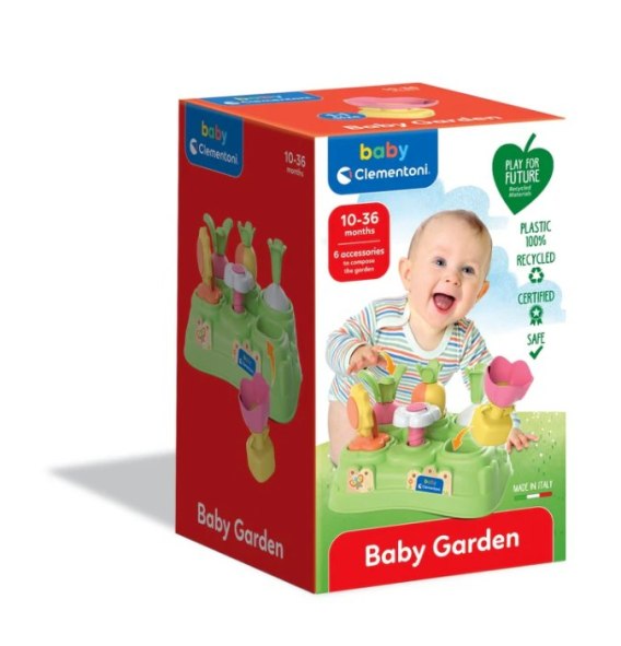 Bardzo kolorowy i wesoły ogród zaprojektowany, aby zapewnić dziecku zabawne i naturalne wsparcie, gdy odkrywa kształty i kolory oraz rozwija swoją zręczność manualną.