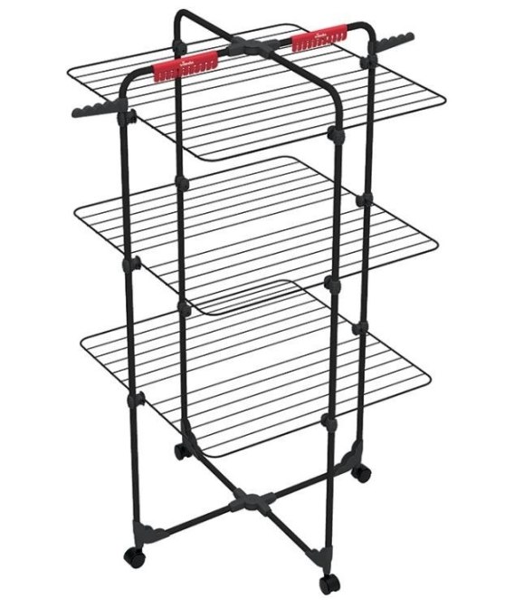 - Dzięki 6 niezależnym blatom, które można złożyć lub zdjąć suszarka ma wiele opcji ustawień i dopasowania pod swoje potrzeby. Po zdjęciu prania można złożyć ją na płasko, co ułatwia późniejsze przechowywanie.
