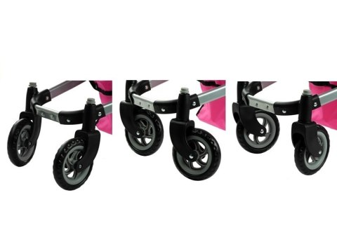Wózek 2 w 1 przyciąga wzrok wszystkich dziewczynek swą konstrukcją, przypominającą budowę prawdziwego wózka, a także fantastyczną kolorystyką, łączącą czerń z detalami w kolorze różowym. To także rewelacyjny przedmiot dla kilkulatek, które lubią opiekować się zabawkowymi bobasami w różnych rozmiarach — od teraz mogą wyprowadzać swe lalki na spacer zarówno w spacerówce, jak i w klasycznym wózku z gondolą. Zmiana tych wariantów jest bardzo prosta — wymaga zaledwie kilku ruchów, a w dużym stopniu urozmaica zabawę. Kolejną, dużą zaletą innowacyjnej konstrukcji wózka dla lalek jest zamontowanie dwóch kół stałych oraz dwóch mniejszych, obrotowych o 360 stopni kółek, które sprawiają, że prowadzenie wózka i manewrowanie nim na drodze jest bardzo lekkie i niewymagające siły.
