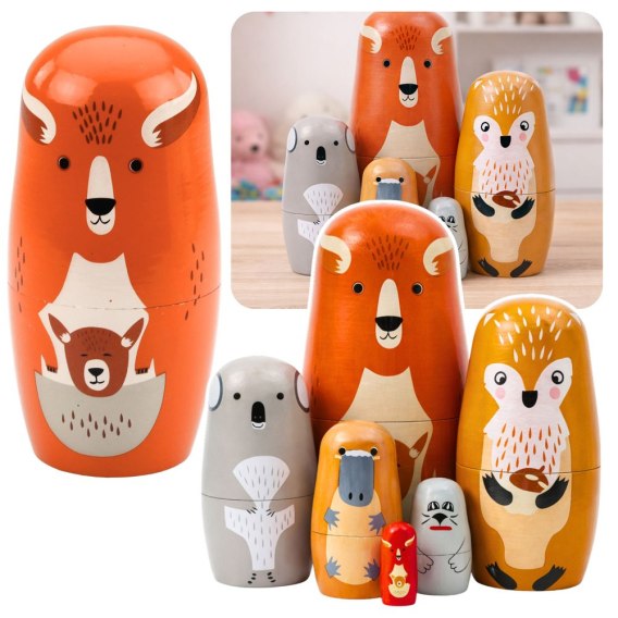 - 6 elementów matrioszki zwierzęta