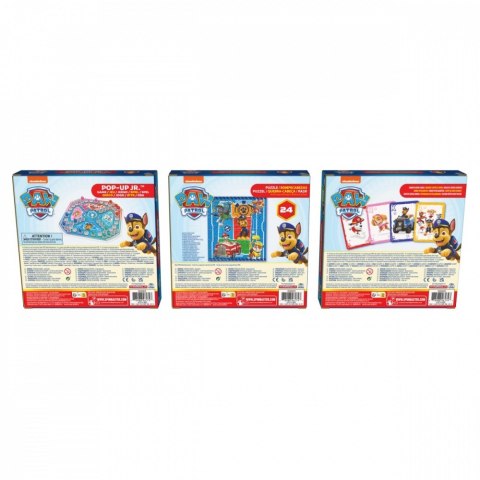 Wypróbuj nowy zestaw 3 gier z serii Psi Patrol od Spin Master Games, oparty o niezwykle popularny serial Nickelodeon. W grze Psi Patrol Pop-Up dla dzieci w wieku 4-8 lat użyj pooppera aby rzucić kostką i zwyciężyć. Bądź pierwszym graczem, który przesunie wszystkie 4 swoje pionki wokół planszy i dotrze do mety. Uważaj - inny gracz może strącić twój pionek z planszy. Przeznaczona dla 2-4 graczy prosta gra planszowa dla dzieci w wieku od 4 lat. Bądź pierwszy graczem, który doprowadzi swoje pionki do bazy w tej łatwej grze z popperem, idealnej na rodzinny wieczór z grami. Pokochasz również talię kart Jumbo w tym zestawie. Te karty Psi Patrol są idealne do gier karcianych dla dzieci, takich jak Czarny Piotruś, Świnka, Makao lub Szalone Ósemki. Na 54 kartach znajdują się litery i cyfry, talia zawiera też jokery. Trzecim elementem zestawu to urocze 24-elementowe puzzle. Ta kolorowa układanka przedstawia wszystkie szczeniaki, w tym Chase'a, Rubble'a, Skye, Marshalla i Rocky'ego. Układanka o wymiarach 26,4 cm x 23,1 cm to idealny prezent dla tych, którzy nie mogą się nacieszyć zabawkami Psi Patrol. Niezależnie od tego, czy szukasz prezentów dla 6-letnich dziewczynek, czy zabawek dla 5-letnich chłopców, ten zabawny zestaw z 3 grami Psi Patrol będzie idealnym prezentem dla maluchów na urodziny lub specjalne okazje. Te gry planszowe dla dzieci w wieku 4-8 lat są przeznaczone dla przedszkolaków, ale wszyscy gracze w wieku od 4 lat wzwyż będą cieszyć się tymi zabawnymi grami, jeśli tylko lubią oglądać serial Psi Patrol. Włącz odcinek Psiego Patrolu i wyciągnij gry oraz układankę, aby spędzić ekscytujący wieczór na rodzinnej zabawie.